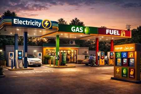 شحن كهرباء وماء وغاز وبنزين